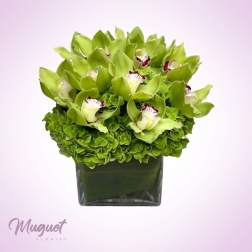 Price: $150.00Lush Serenity: Green Cymbidium Orchids and Hydrangeas Arrangement
