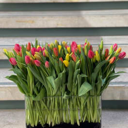 Price: $295.00 Enchanted Blooms: Lovely Pink Rose and Tulip Arrangement Product Tags: Same-day Delivery