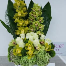 Price: $150.00 Lush Serenity: Green Cymbidium Orchids and Hydrangeas Arrangement Product Tags: Best seller Same-day Delivery