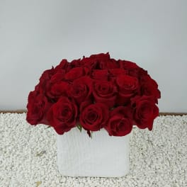 Price: $245.00 Enchanted Garden: A Boxed White Rose Arrangement of Timeless Elegance Product Tags: Same-day Delivery